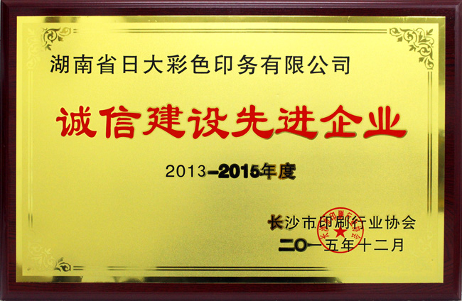 印刷行業(yè)誠信建設先進企業(yè)