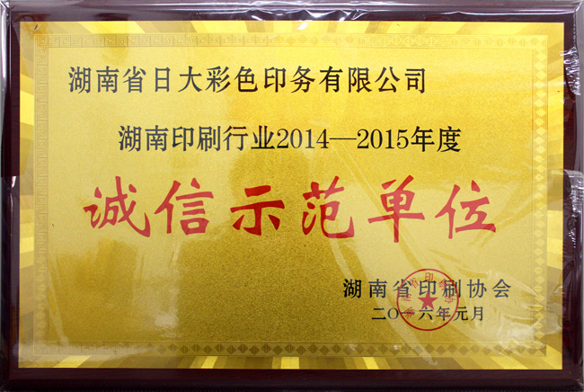 湖南印刷行業(yè)誠信示范單位
