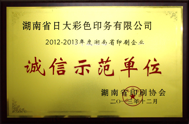 湖南省印刷企業(yè)誠信示范單位